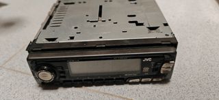 Equipo de música JVC con reproductor de CD y doble pletina. - Reproductor de 3 CDs. - Doble pletina de cassette con auto reverse. - Panel frontal motorizado. - Radio FM/AM.