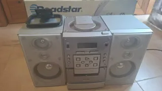 Minicadena de la marca Emerson. Cuenta con reproductor de CD, doble pletina de cassette y radio - Ecualizador gráfico. - Sintonizador de radio. - Auto Reverse en pletinas. - Mando a distancia incluido.