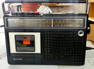 Radio cassette Sanyo Ideal para amantes de la música retro. Funcionando tanto la radio como el cassette - Radio de 6 bandas. - Reproductor de cassettes - Diseño portátil con asa integrada. - Incluye antena. Tiene una tapa pegada donde las pilas ,pues le faltaba su tapa. Volumen independiente twiter y woofer. Aparato pesado y de alta Gama.