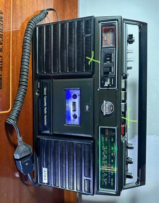 Radio cassette Aiwa - Año 1970. - FUNCIONA RADIO Y CASSETTE. - Probado. - Tiene un receptor sensible FM / SW / MW. - Un indicador de sintonizacion y un indicador de bateria. - Correas de transmisión cambiadas, - - Limpios los potenciometros - MAYO 2025. - Sonido, claro limpio y potente. - Incluye casetes. * Auto STOP no dispone. * Tapa trasera no original. * A pilas no funciona, necesita soldar cable suelto del compartimento pilas. PRECIO FINAL MEJORADO NO SE REBAJA MAS ⚠️ PESO NETO 5.40 Kg. ENVIO: WALLAPOP Y CORREOS NO POR MENSAJERIAS.