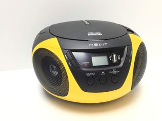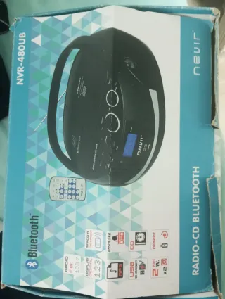 Radio portátil con múltiples funciones para disfrutar de tu música. - Conexión USB y Bluetooth. - Diseño moderno y compacto. - No funciona el reproductor de cd - Puede ir a pilas