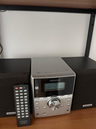 Sistema de audio micro Hi-Fi de la marca Kenwood. - Reproductor de CD. - pletina de cassette. - Sintonizador de radio AM/FM. - Entrada auxiliar (AUX). - Control de volumen y multi-control. - Mando a distancia