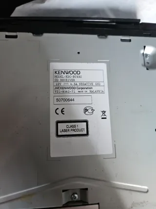 Radio CD Kenwood KDC-3021A para coche. - Modelo: KDC-3021A - Voltaje: 12 V.D.C - Fabricado por Kenwood Corporation. - Ensamblado en Hungría. - Etiqueta de CLASS 1 LASER PRODUCT.