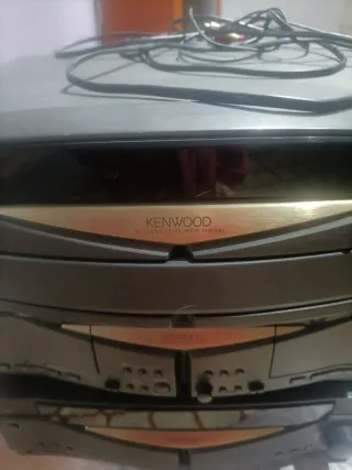Equipo de sonido Kenwood con reproductor de CD y doble pletina de cassette. La radio funciona bien.El reproductor de CD daba problemas de lectura de CD en relacion con la limpieza de la lente.Facil de solucionar. - Reproductor de CD múltiple. - Doble pletina de cassette con auto-reverse. - Sintonizador de radio. - Entrada auxiliar.