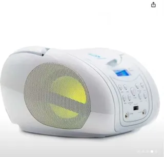 Radio CD portátil con un diseño moderno y llamativo. - Solo siintoniza emisoras de radio. - Puerto USB para reproducir música. - Pantalla digital para información.