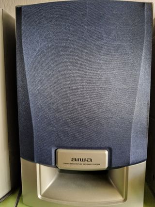 Minicadena en buen estado. Incluye dos altavoces. Dispone de radio, reproductor de CD y doble pletina de casete.