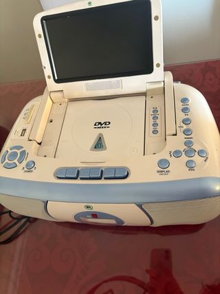 Reproductor de CD y radio de Minnie Mouse, ideal para niñ@s. Es rosa y tiene un diseño muy bonito. - Reproduce CDs de audio. - Incluye función de radio. - Perfecto estado estético. Funciona perfectamente, tan sólo le falta el asa de transporte