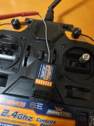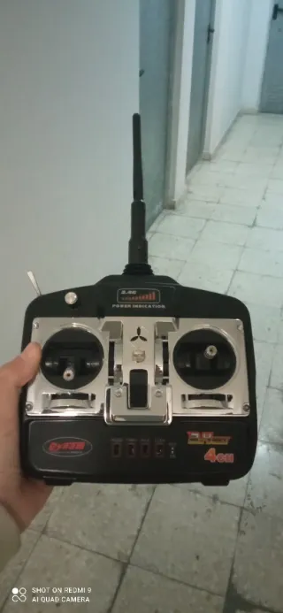 Mando a distancia para aeromodelismo, compatible con aviones RC. Algo negociable - Diseño ergonómico en negro y plateado. - Antena integrada para mayor alcance. - Indicador de potencia. Apenas usado