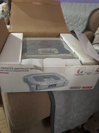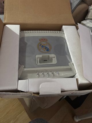 Radio despertador con altavoces digitales MP3/USB del Real Madrid. Está en perfecto estado y sin usar. - Incluye radio y reloj. - Reproduce archivos MP3 y USB.