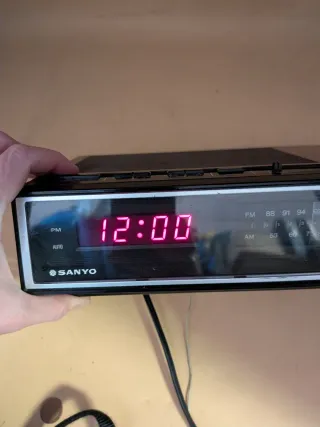 Radio despertador Sanyo modelo MR 5100, un clásico de la época. - Diseño vintage en color negro y plateado. - Sintonizador de radio AM/FM. En buen estado y funcionamiento tal y como muestra las fotografías ya que son parte de la descripción. Envía a través de wallapop o entrega en mano en Madrid, barrio de la Concepción, tribunal Callao o Gran Vía