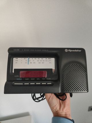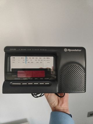 Despertador digital con radio con conexión eléctrica y pilas. Usado muy poco, como ves en las fotos, está como nuevo. Funcionamiento perfecto. Marca Bluesky.