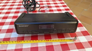 Radio despertador Silvercrest en color negro. Cuenta con varias funciones para tu día a día. Funciona sin problemas. - Pantalla digital. - Botones de control: Preset, AOT/Snooze, Memory, Timer, Mode. - Funciones BASS y ALARM.
