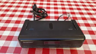 Maletín vintage que combina radio y reloj despertador. Tiene algunas marquitas de uso que se aprecian en las fotos. No dispongo del cargador. - Diseño en madera y detalles metálicos. - Compartimento para altavoz. - Esfera de reloj analógico. - Controles de banda, volumen y tono.