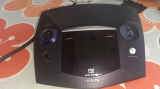 Radio despertador Philips en perfecto estado. Es un reloj despertador con radio, ideal para colocar el móvil encima mientras se carga. - Incluye función de despertador y radio. - Dispone de dos alarmas. - Permite ajustar el brillo de la pantalla.precio negociable