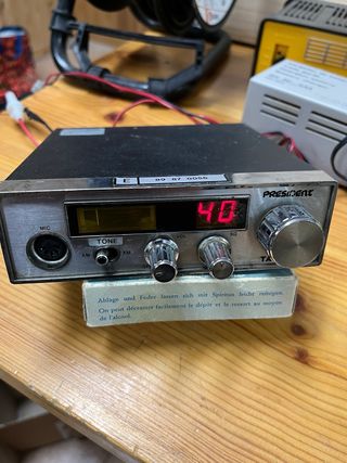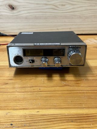Emisora de radio de la marca President, modelo Taylor. - Frontal plateado. - Pantalla digital. - Mandos de volumen y squelch. La emisora enciende pero desconozco si funciona bien no puedo probarla. Se vende tal cual se ve en las fotos