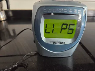 Radio despertador Philips con pantalla digital. - Sintonizador FM/MW. - Diseño compacto y moderno. - Funciona con cargador y/o pilas.