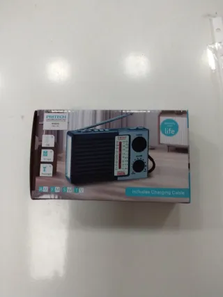 Radio portátil PRITECH con múltiples funciones. Ideal para llevar a cualquier parte. - Bandas AM, FM, SW y TV. - Puerto USB. - Ranura para tarjeta TF. - Incluye cable de carga.