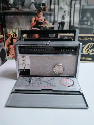 Radio portátil Zenith Transoceánica modelo 3000-1. - sin probar - No se garantiza su funcionamiento. - Diseño clásico en color plata y negro. - Incluye mapa del mundo y dial de tiempo. - venta en persona - NO HAGO ENVÍOS GRACIAS.