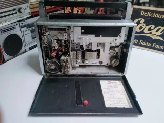 Radio portátil Sanyo M9980K con reproductor de cassette. Un clásico de 1972. - Sintonizador de radio FM, MW y SW. - Reproductor de cassette con función AUTO STOP. - Entrada para auriculares. - Micrófono condensador incorporado.le falta los tornillo de la tapa trasera.. se escucha muy desoacito hablia que agregrarla.escucho ofertas.