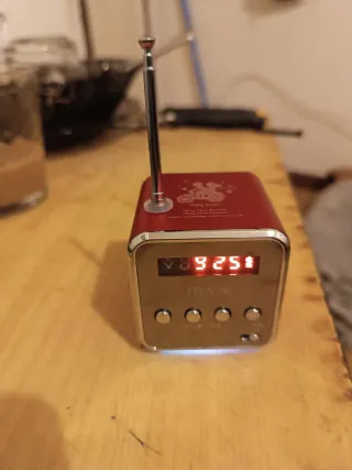 1 Mini radio portátil compacta con sintonizador analógico AM/FM. Ideal para llevar contigo a cualquier lugar.Nueva a estrenar. - Diseño plateado y negro. - Antena extensible para mejor recepción. - Toma de Auriculares. - Cinta para llevar en la muñeca. - Sonido excelente.