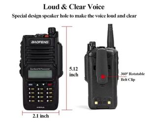 Walkie talkie Baofeng de doble banda FM. BAOFENG UV-9R Plus 8 Watt IP67 Dual Band Rechargeable Two-Way Radio (144MHz-146MHz VHF & 430MHz-440MHz UHF) Includes Complete Kit, Black.