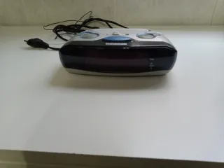 Radio despertador Thomson con pantalla digital. - Diseño moderno en color plata y negro. - Botones de control en la parte superior.