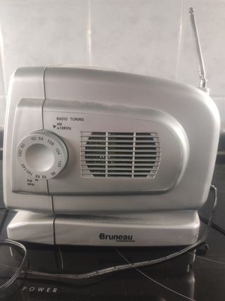 Radio-TV Bruneau en color gris plata. Se encuentra en buen estado. - Radio AM/FM. - Sintonizador analógico. - Antena telescópica.
