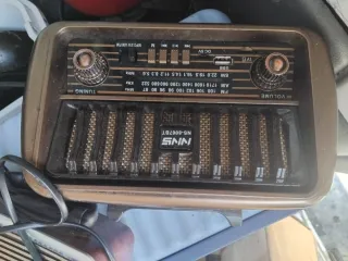 Radio portátil NNS con diseño retro y acabado en tonos dorados y marrones. - Bandas FM, AM y SW. - Reproducción de MP3. - Puerto USB. - Entrada DC 5V.