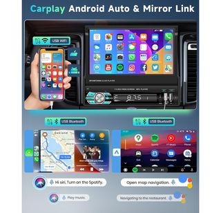✅ ¡LO ESTRENAS TÚ! ✅ EN MANO O ENVÍO ✅ PRECIO NO NEGOCIABLE. ✅ SI VES EL ANUNCIO ES QUE LO TENGO DISPONIBLE. 1 DIN Radio de Coche CarPlay Inalámbrico y Android Auto, Pantalla Táctil Plegable 7 Pulgadas Bluetooth 1 DIN con SWC Mirror Link FM Radio USB-C EQ Color Retroiluminación Ajuste Cámara. Control del Volante y Cámara HD de Marcha Atrás.