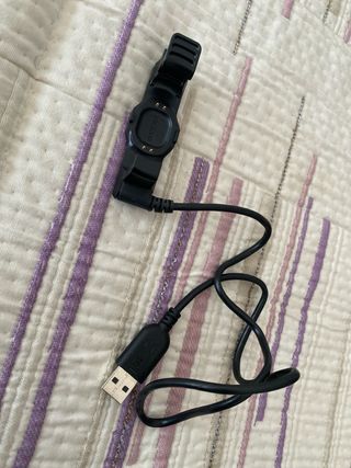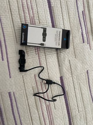 Cable de carga y datos para dispositivos Garmin. - Conector USB. - Base de carga para el reloj.