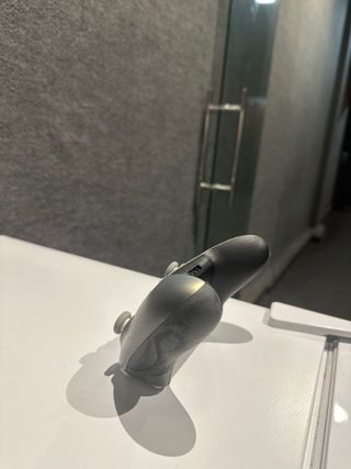 Mando de consola Xbox Series X. - Color gris perla con detalles dorados. - Diseño ergonómico para mayor comodidad. - Superficie texturizada para un agarre firme.