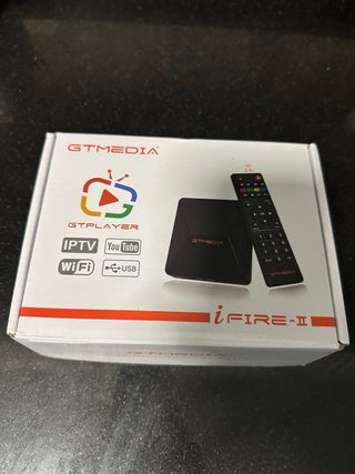 Receptor GTMEDIA iFIRE II para IPTV y más. - Compatible con IPTV y YouTube. - Conectividad WiFi y puerto USB. - Incluye mando a distancia.