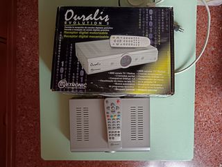 Receptor decodificador de satélite Metronic Ouralis Evolution3. Comprobado su correcto funcionamiento. Se envía con mando en su caja y con cable de antena y clavijas incluido. Hago lotes y descuento con otros artículos de mi cuenta.