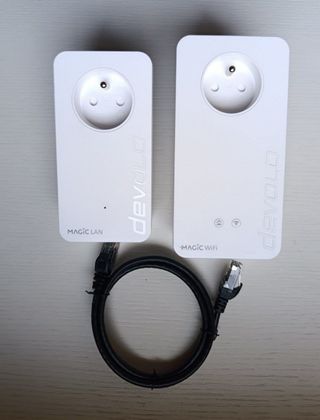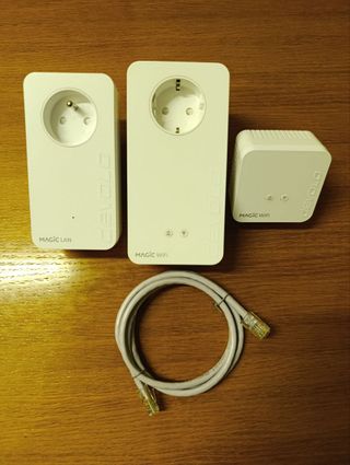 Vendo kit PLC de devolo Magic 1 WiFi. - 1 Adaptador Devolo Magic LAN. - 2 Adaptadores Devolo Magic WiFi y uno con toma de corriente para no perder el enchufe - Cable de red incluido. - Perfectos para mejorar la cobertura WiFi en casa. - Permite conectar dispositivos a la red mediante WiFi y cable LAN. - Fácil instalación. - Incluye 3 adaptadores. No leer: Devolo, tplink, PLC, Mercusys, Tenda, Netgear, Powerline, Fritz, Strong, Linksys, Google, Google Wifi, Google Nest, Dlink
