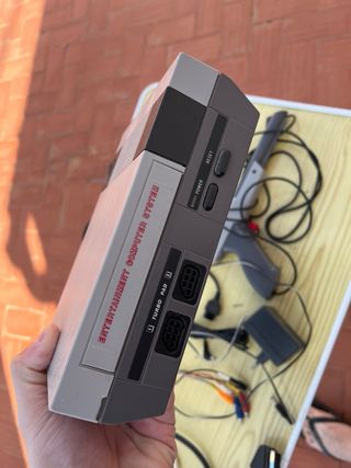 Consola retro Nintendo NES en colores beige y gris. Funciona, con dos mandos todos los cables y accesorios.