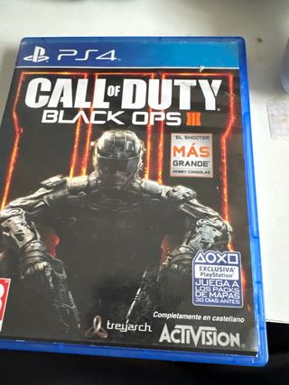 Consola PlayStation 4 en color negro, en muy buen estado. Incluye dos mandos y dos videojuegos. - Dos mandos DualShock 4. - Juego Call of Duty: Black Ops III. - Juego Call of Duty: Black Ops 4. Tambien se venden cosas por separado cada juego 10€ Mando blanco 45€ Mando rojo y negro 15€ Ps4 120€ Y dinosaurio de un huevo kinder 2€