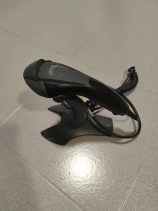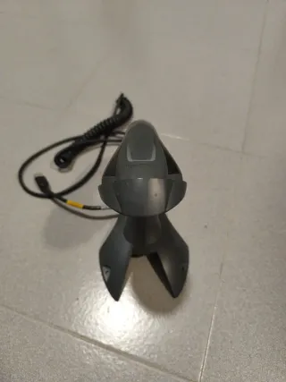 Lector de código de barras Honeywell con base. Modelo: Voyager 1200 - Diseño ergonómico. - Color negro y gris.