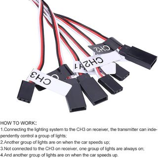 Controladora de luces para coches RC. - Múltiples salidas para diferentes luces (delanteras, traseras, intermitentes, freno). - Conexiones tipo JST para fácil instalación. Producto completamente nuevo.