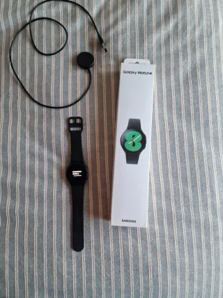 Reloj inteligente Samsung Galaxy Watch4 en color negro. Incluye su cargador. - Diseño elegante y moderno. - Correa ajustable.