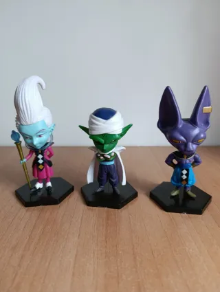 Set de 3 figuras coleccionables de Dragon Ball. - Personajes estilo chibi. - Base individual para cada figura. Tres figuras cabezonas. •Whis (8€) •Piccolo (8€) •Beerus (8€) Precio Lote (20€)