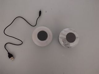 Dos altavozes de la marca Ale-Hop. Uno ya es viejo pero aun va como si fuese nuevo y el otro tiene unos tres usos y se compro hace una semana. Falta una ventosa y cargador cosa que tiene el otro altavoz. Suenan perfecto, la bateria dura 4h es resistente a salpicaduras y no tiene ningun fallo. NO ENVIO