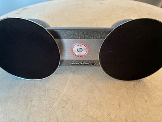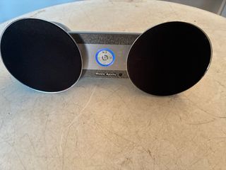 Altavoz portátil con un diseño moderno y elegante. Se tal como se ve en las. Falta la tapa de las pilas Funciona correctamente. - Dos altavoces ovalados. - Panel central con detalles texturizados. - Botones de control iluminados.