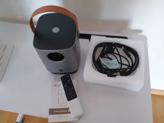 Proyector portátil con un diseño moderno y asa para facilitar su transporte. - Características: 4P y 4D corrección; Wifi 6; Bluetooth 5.2; Sistema de refrigeración IP5X - Tecnología de conexión: HDMI - Resolución de pantalla: 1280 x 720 - Tipo de pantalla LED - Brillo: 13000 lumen - Dispositivos compatibles: televisores, ordenadores portátiles, móviles, tabletas, consolas de juegos y dispositivos Android e iOS - Contraste: 15000:1 - Distancia máxima de proyección: 12 pies - Tamaño de imagen: 200 pulgadas Usado en dos o tres ocasiones. Se vende por mudanza. Precio original 159€.
