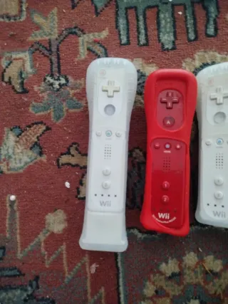 Lote de cinco mandos para Nintendo Wii. - Color blanco y rojo. - Incluye correa de seguridad.