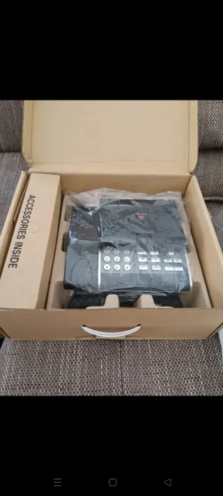 Teléfono de sobremesa con pantalla, ideal para oficinas o uso profesional. Se vende nuevo, en su caja original. - Pantalla integrada. - Diseño moderno en color negro y gris.