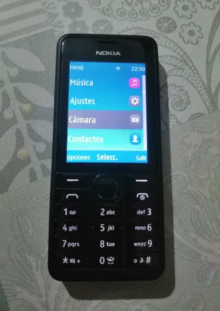 Teléfono móvil Nokia 301 en color negro. Incluye cargador original Nokia. Buena duración de batería. Perfecto estado físico y funcionamiento..
