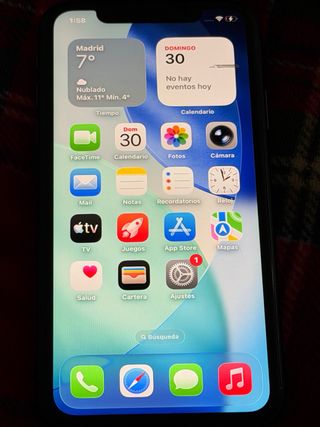 iPhone X con 64GB de almacenamiento y muy buen estado, con contorno plateado y parte de atrás blanca. Capacidad de batería del 71%. Se entrega con funda negra.