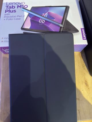 Tablet Lenovo Tab M10 Plus en color gris, con lápiz óptico Precision Pen 2 y funda. - Incluye Precision Pen 2. - Incluye funda tipo folio.