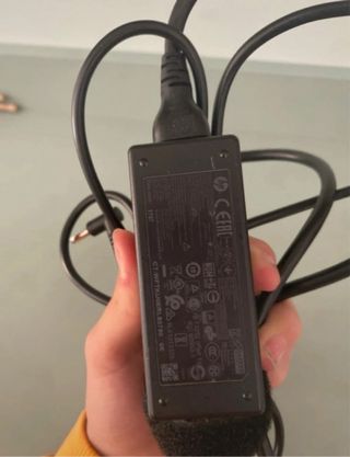 Cargador de portátil HP con enchufe europeo. - Cable de alimentación negro. - Adaptador de corriente. - Conector de salida azul. NO FUNCIONA
