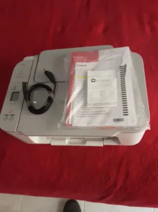 Impresora multifunción Canon. - Conexión Wi-Fi. - Escáner integrado. - Bandeja de papel. - Panel de control. - Cable de alimentación incluido. - tiene Factura,comprado en febrero de 2025,usada pocas veces,hay que comprarle tinta En perfecto estado
